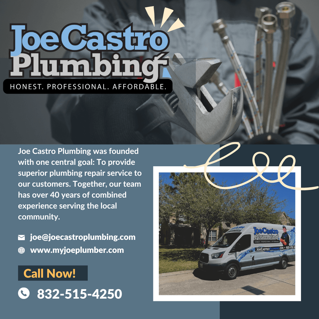 Joe Castro Plumbing is your trusted plumber in Spring, TX. We offer top-quality services with professionalism and reliability. From emergency plumbing to water heater installations, drain cleaning, and maintenance, our licensed team ensures efficient and affordable solutions.